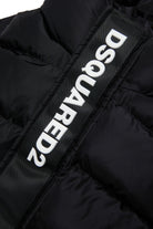 Long quilted padded jacket in glossy nylon with hooded hood. The contrasting Dsquared2 logo along the closure gives an iconic and instantly recognizable touch.