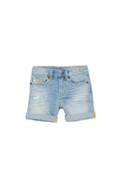 Light-coloured jeans shorts with abrasions