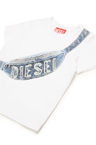 Short-sleeved crew-neck T-shirt in jersey. Features a Diesel Hip Pack trompe-l'oeil print on the front. Practical button closure on the shoulder. Made of 100% cotton.
