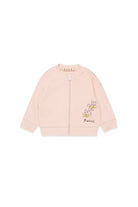 Full-zip sweatshirt with logo and floral print on the front. The garment features ribbed collar, cuffs, and hem.