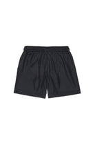 Boxer swimsuit with a contemporary logo design.