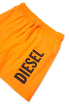 Boxer swim trunks with contrasting logo and elastic waistband.