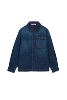Lightweight dark blue denim shirt enhanced by contrasting gradients. A timeless classic, made unique by the institutional logo embroidered heart side and tobacco-colored seams. Perfect for any occasion.