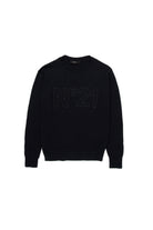 Crew neck pullover in 100% cotton with ribbed texture and logo applied on the chest