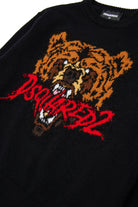Wool-blend long-sleeve pullover with Bear graphic and Dsquared2 logo. A tongue-in-cheek nod to the horror world and references to the wild Canadian forests-a detail that won't go unnoticed.