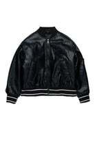 Coated fabric bomber jacket, padded and lined for comfort and protection. The N°21 logo, embossed on the heart side, adds recognition to a grunge-inspired garment perfect for adding character to casual looks.