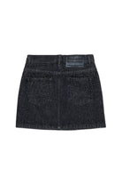 Black denim mini skirt embellished with front-back applique hotfixes. The light touch given by the hotfixes adds an accent of elegance for any occasion.