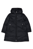 Long hooded padded jacket perfect for winter. Double-pull zip closure allows for modular fit, ensuring comfort and versatility.