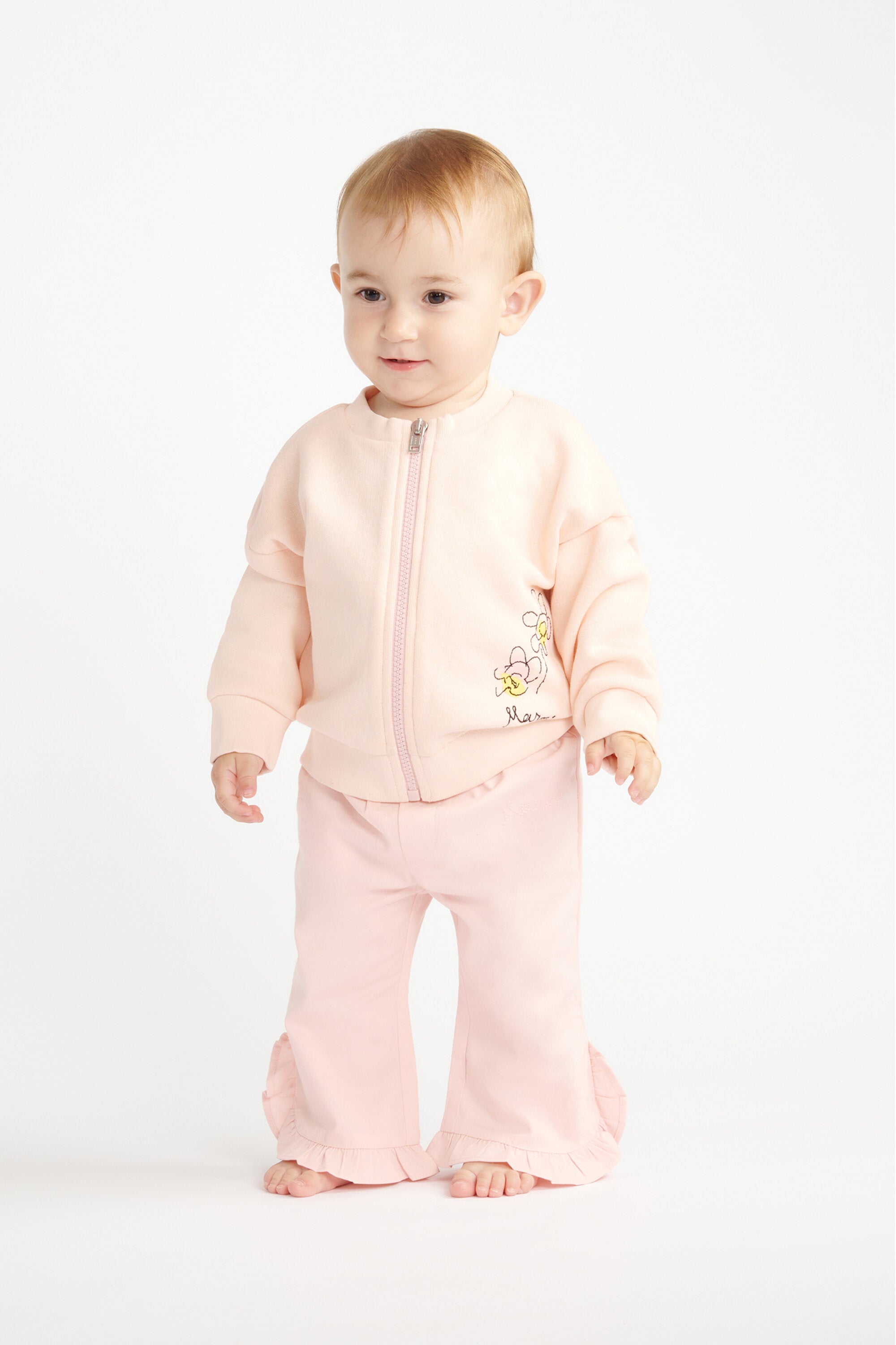 Full-zip sweatshirt with logo and floral print on the front. The garment features ribbed collar, cuffs, and hem.