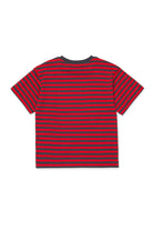 Short sleeve T-shirt in striped micro ribs, made of yarn-dyed cotton. A mix of colors that enhances and enhances the logo printed on the front.