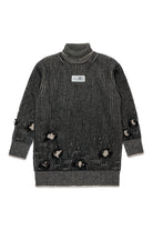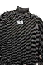 High-neck mini dress in two-tone rib wool, soft and warm. Mending breaks give an authentic lived-in effect, perfect for those looking for a refined, characterful look that won't go unnoticed.