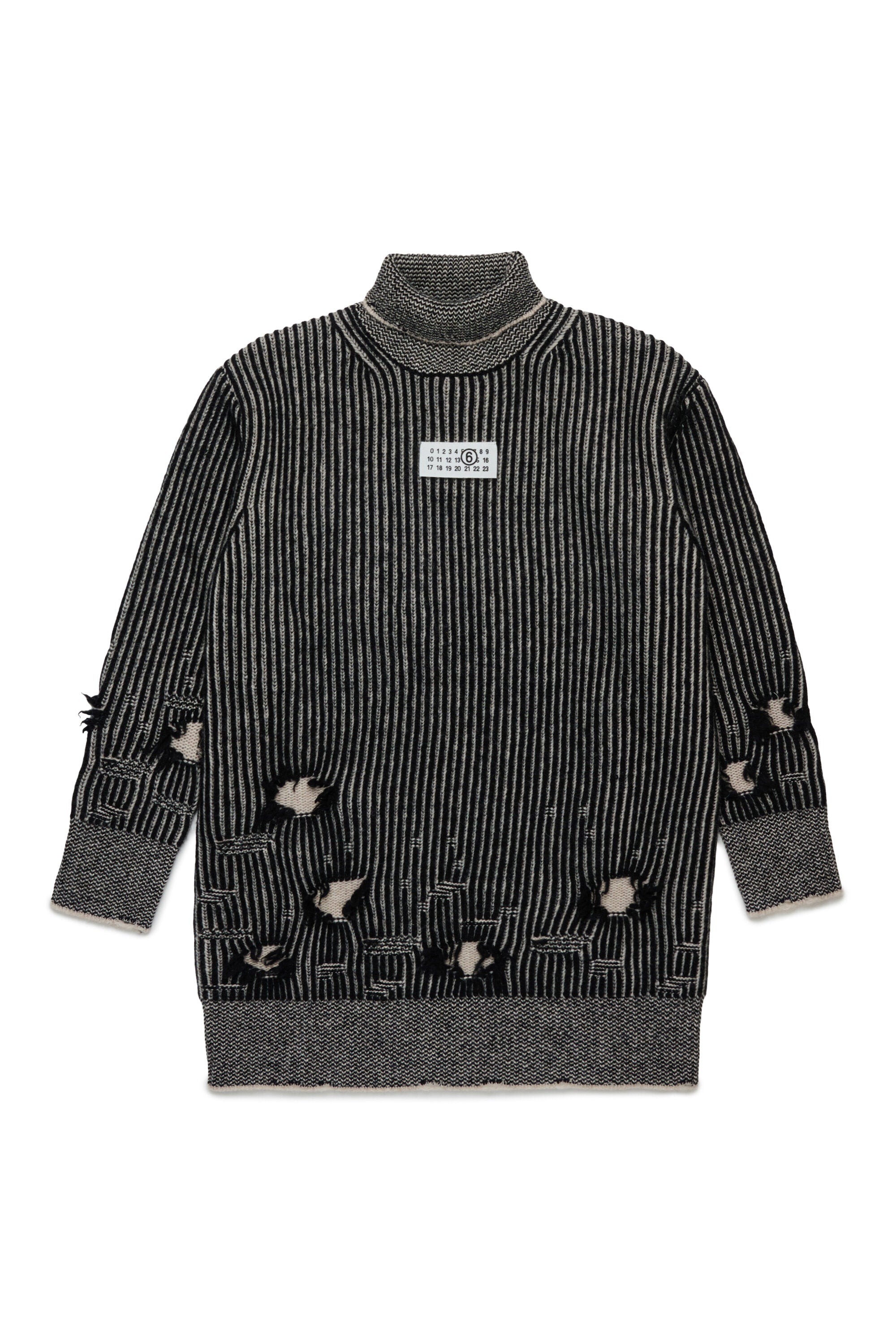 Ribbed wool mini dress with rips