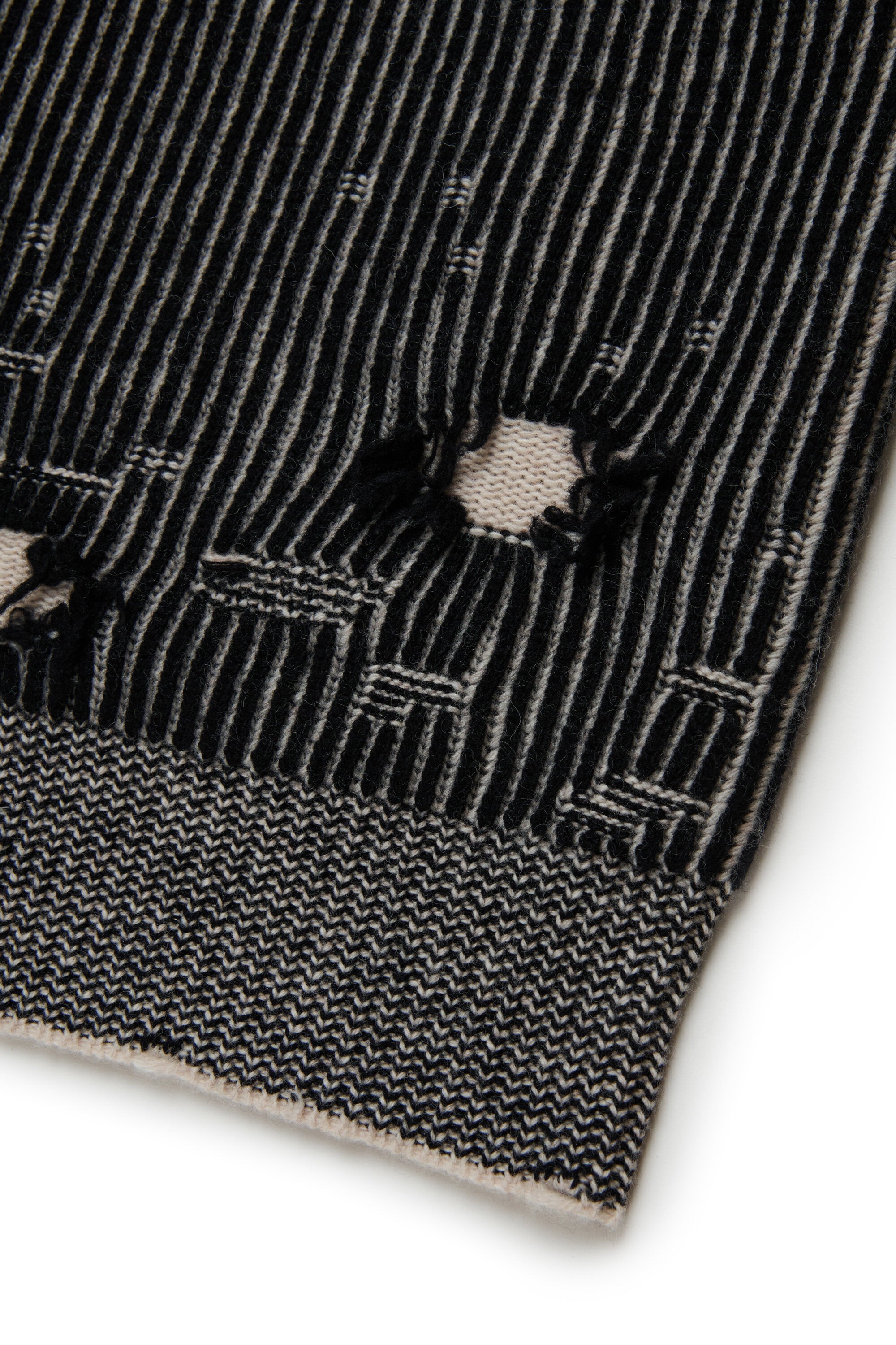 • Two-tone rib knit with breaks