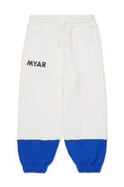 Fleece trousers with contrasting band at calf level, elastic waistband and hem.