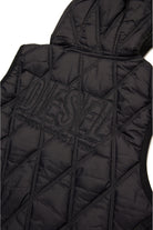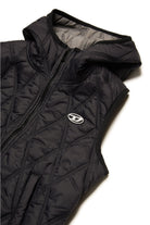 Lightweight fake down jacket with fixed hood. Three-needle quilting with Diamond pattern on nylon. Iconic Oval D logo patch applied to the front on the heart side. DIESEL For Successful Living logo embroidered in tone on the back. Zip closure. Front welt pockets. Inner lining in contrasting colour.