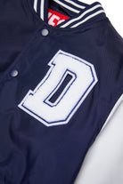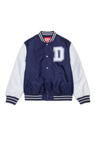 Padded varsity jacket with D patch on the front on the heart side and Diesel logo printed on the back. It features a button closure.