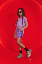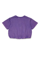 100% cotton T-shirt with embroidered logo and elasticated hem for a cropped effect.