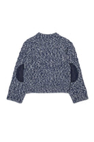 Crew-neck crew-neck wool-blend pullover made of two-tone yarn with denim patches on the sleeves and Dsquared2 patch applied to the bottom. Soft and warm, it is ideal for any occasion.