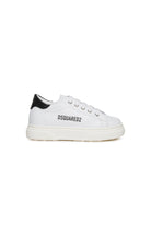 Low lace-up trainers with Dsquared2 branded logo printed on the side. Maple Leaf on the back. Calf leather upper and inner lining. Thermoplastic rubber sole. Made in Italy.