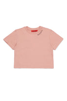 100% cotton T-shirt with printed logo on the shoulder. The design features a cropped silhouette and short sleeves for a contemporary, casual style.