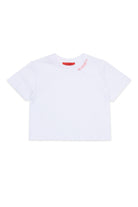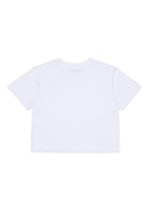 100% cotton T-shirt with printed logo on the shoulder. The design features a cropped silhouette and short sleeves for a contemporary, casual style.