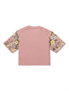 T-shirt with sequin floral embroidery on a fabric base. The soft jersey with crew neck and wide-cut short sleeves enhances the silhouette.