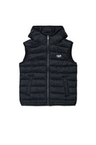 Padded vest with printed logo, sleeveless design, and hood. A practical piece with clean lines, perfect for completing any outfit.