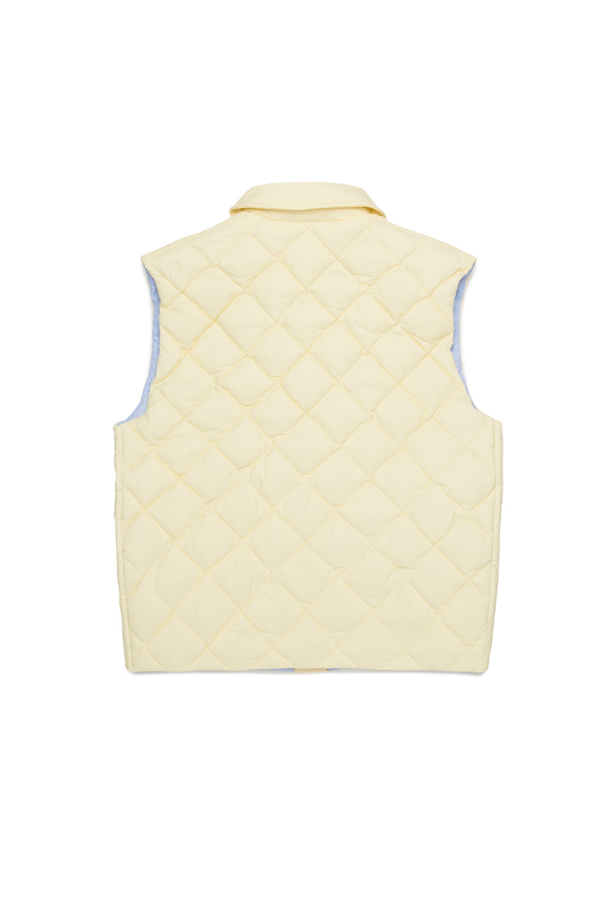 Padded jacket with printed logo, featuring diamond quilting and a sleeveless design