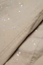 Trench coat with printed logo, knee length, and paint splatter effect print. The signature back stitching gives the piece its distinctive character.