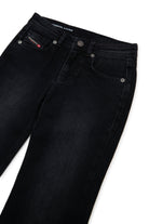 D-Prilla bootcut fit jeans in black shaded denim with a punk attitude. A model that wraps the body from the hips to the knees with a wide flared bottom. Cropped jeans ideal for adding a bold, grunge feel to any look.