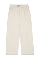 Cotton drill flare jeans. A model that combines character and versatility, with raw-cut details that add a cool touch to the season's wardrobe.