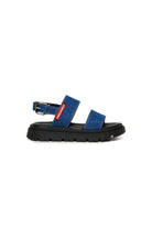 Sandals with belt. Dsquared2 label applied on the side (flag logo). Denim upper. Calf leather inner lining. Thermoplastic rubber platform sole. Made in Italy.