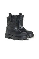 Low leather boots with contrasting color institutional logo on the toe. Contemporary designed footwear perfect for those looking for style and comfort.