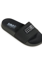 Modern design slide slippers. Numeric logo in contrasting colour on the upper. PVC upper. Polyurethane sole. Made in Italy.