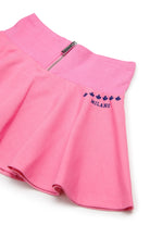 Mini skirt with logo and print on the back. Model with drawstring waist and pleated details.
