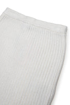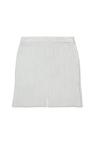 Wool-blend knit short skirt. A garment with a modern spirit, with ribbed knitting that enhances the silhouette enhanced by a mylar finish. Ideal for parties and evening events.