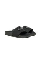 Modern design slide slippers. Numeric logo in contrasting colour on the upper. PVC upper. Polyurethane sole. Made in Italy.