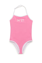 One-piece swimsuit in Lycra. N°21 Institutional logo on front. Contrasting color piping. Adjustable Lacing.