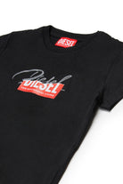 Cotton jersey T-shirt with glittery cursive logo superimposed on the Diesel for successful living logo.