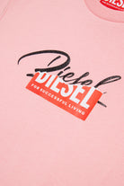 Cotton jersey T-shirt with glittery cursive logo superimposed on the Diesel for successful living logo.