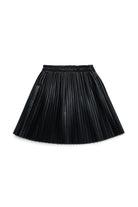 Short pleated skirt in coated fabric with elasticated waist, enhanced by the iconic color contrast stitching on the back. Versatile and characterful, it is easily paired to create various outfits.