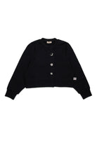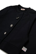 Long-sleeved, jewel-buttoned sweatshirt style with a refined taste. A reinterpretation of the classic crew-neck sweatshirt, with raw-cut hems that add a modern, edgy touch to a unique garment.