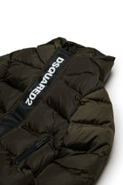 Long quilted padded jacket in glossy nylon with hooded hood. The contrasting Dsquared2 logo along the closure gives an iconic and instantly recognizable touch.
