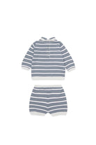 Wool tracksuit set with allover striped graphics. A soft and warm outfit to accompany kids in their first discoveries and playtime.