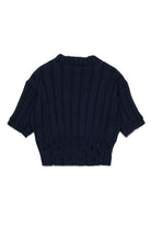 Short-sleeved crew-neck top in ribbed knit with localised rips. Marni Flower logo in contrasting color on the neck. Made of 100% cotton.