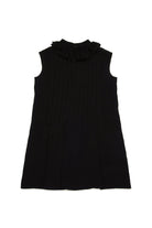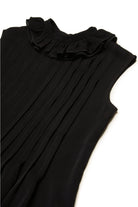 Sleeveless crew-neck dress in viscose crepe. Ruffles on the collar. Front pleats. N°21 logo embroidered in tone on the front. Drop closure with lined button on the back. A perfect garment for ceremonies and special occasions.