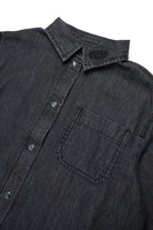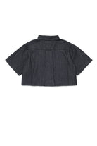 Short-sleeved shirt with an embroidered logo on the collar, featuring a cropped cut and a patch pocket on the chest.