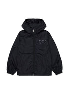 Windbreaker with printed logo and hood, featuring clean lines and elasticized details at the cuffs and hem.