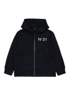 Oversize full zip hooded sweatshirt, a comfortable and versatile garment. The N°21 Institutional logo, applied heart side in contrasting color, adds a touch of style. Perfect for a casual and relaxed look.