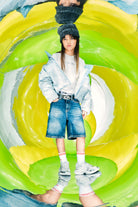 Dark blue dirty-effect denim short pants with small abrasions. A wide fit model perfect for those who like comfort with a streetstyle touch.